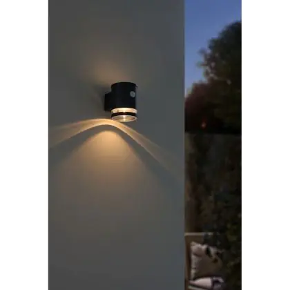 Beschrijving D'Lite Solis Wandlamp Solar Zwart Up & Down - 830 Warm Wit | IP54 - Bewegingssensor