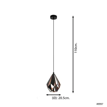 Beschrijving Eglo Pendelarmatuur Carlton 1 Zwart, Koper | Geschikt voor E27