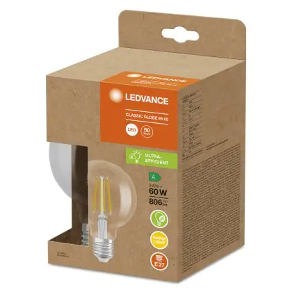 Beschrijving Ledvance Globe LED E27 Filament Helder 3.8W 806lm - 830 Warm Wit | Vervangt 60W