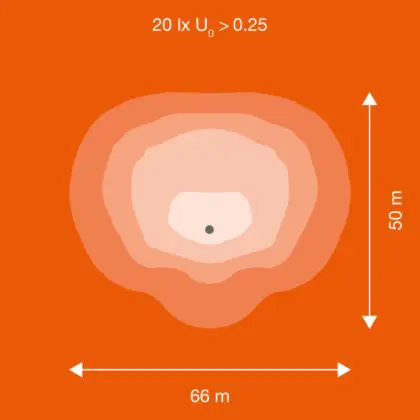 Deze LED breedstraler wordt gebruikt om (grote) oppervlaktes effectief te verlichten. Een hoge lichtopbrengst is hierbij van groot belang; hoe hoger de licht output, hoe groter de verlichte oppervlakte. Hierbij kun je denken aan het verlichten van erven, gevels, bouwplaatsen, sportcomplexen etc. De lichtopbrengst van deze LED floodlight is 123000 Lumen, met een Lumen Watt efficiëntie van lm/W. Dit houdt in dat het armatuur weinig energie verbruikt voor het licht dat deze genereert.