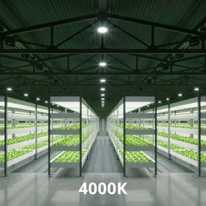 Deze LED High-bay bezit een enorme lichtopbrengst van 26000 lumen! Dit hoge aantal laat zien dat een armatuur zoals deze ook vanaf een grote hoogte nog steeds zijn werk doet. Hang je een High-bay armatuur zoals deze in een ruimte met lagere plafonds, dan is de hoeveelheid licht simpelweg te krachtig en te fel. Met als gevolg dat wanneer mensen in het licht kijken, ze direct worden verblind. Vanaf hoge plafonds (6 tot 14 meter) is dat een ander verhaal. Ook niet onbelangrijk om op te letten is de kleurtemperatuur. Deze is bij dit product: 4000K - Koel Wit. Twijfel je over de juiste kleurtemperatuur voor een grote oppervlakte? Kies dan voor koel wit (4000K). Deze lichtkleur heeft een natuurlijke tint en houdt werknemers in productie-omgevingen alert.