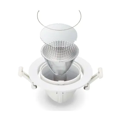 De lichtopbrengst en de gradenbundel spelen een grote rol. Zo geeft de lichtopbrengst van 2700 Lumen in combinatie met de 36° stralingshoek deze inbouwspot een specifieke toepassing. Kort samengevat is een lichtintensiteit van maximaal 400 Lumen ideaal voor accentverlichting, terwijl hogere waardes goed gebruikt kunnen worden als basisverlichting. Over het algemeen geldt: hoe breder de gradenbundel, hoe geschikter deze is door basisverlichting. Dit komt doordat het licht over een groter oppervlak wordt verspreid. Smallere gradenbundels (tot 40°) kunnen echter bij hoge plafonds ook goed tot hun recht komen als algemene verlichting.