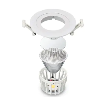 De lichtopbrengst en de gradenbundel spelen een grote rol. Zo geeft de lichtopbrengst van 3100 Lumen in combinatie met de 36° stralingshoek deze inbouwspot een specifieke toepassing. Kort samengevat is een lichtintensiteit van maximaal 400 Lumen ideaal voor accentverlichting, terwijl hogere waardes goed gebruikt kunnen worden als basisverlichting. Over het algemeen geldt: hoe breder de gradenbundel, hoe geschikter deze is door basisverlichting. Dit komt doordat het licht over een groter oppervlak wordt verspreid. Smallere gradenbundels (tot 40°) kunnen echter bij hoge plafonds ook goed tot hun recht komen als algemene verlichting.