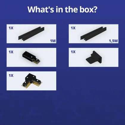 Beschrijving Rail Set 1-Fase L 1 x 1,5 Meter Zwart | incl. Eindkap, Voedingsconnector en L -Verbindingsstuk