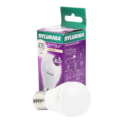 De Sylvania ToLEDo Ball E27 is de perfecte vervanger voor uw huidige halogeen en/of gloeilampen met E27 fitting, ook wel dikke fitting genoemd. De vorm wordt ook wel een kogellamp genoemd en kan in zowel open en gesloten armaturen gebruikt worden. Door de LED technologie bespaart u niet alleen op energiekosten maar ook op onderhoudskosten doordat de Sylvania ToLEDo tot wel 15x langer meegaat dan traditionele gloeilampen!